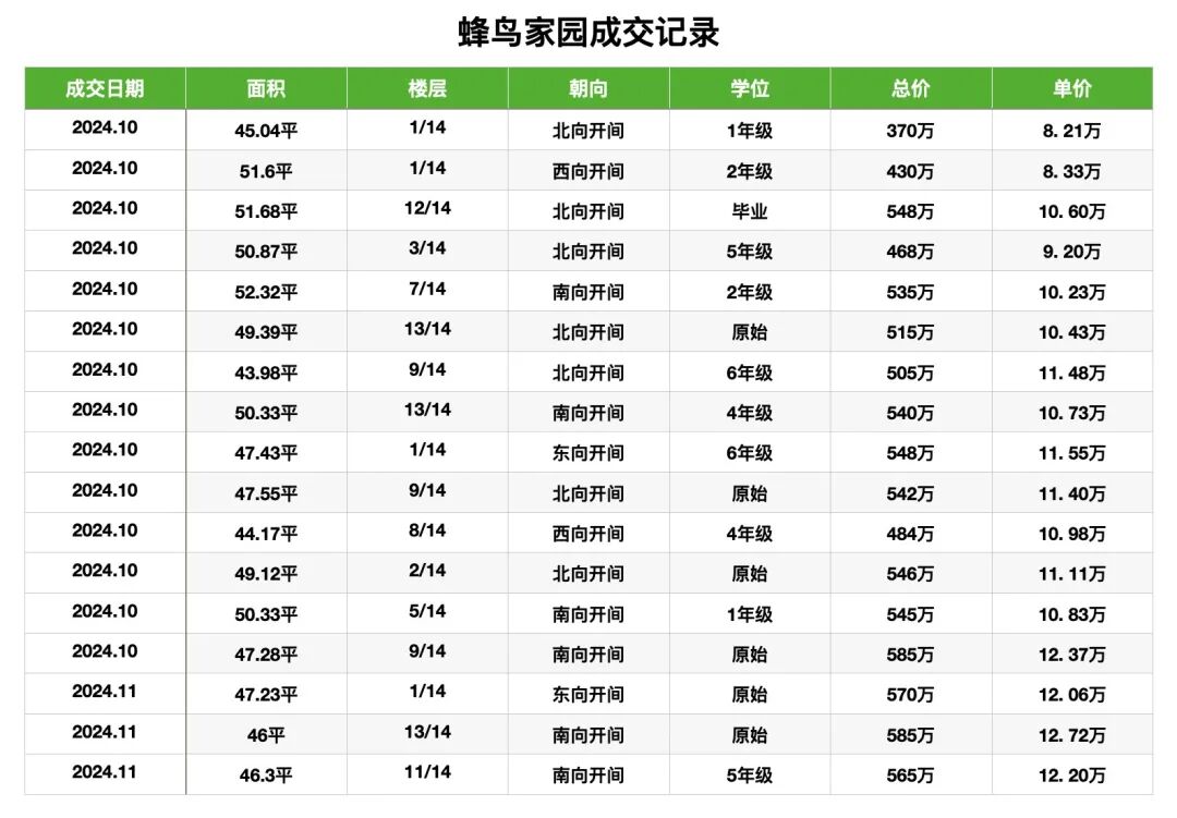数据是真实的啊,除了370那个是一年级名额,相当于6年之后才能腾出名额,跟名额没占用比起来差个多少也没明确的标准。不管怎么说,蜂鸟这一波算巨量成交了,价格涨是肯定的