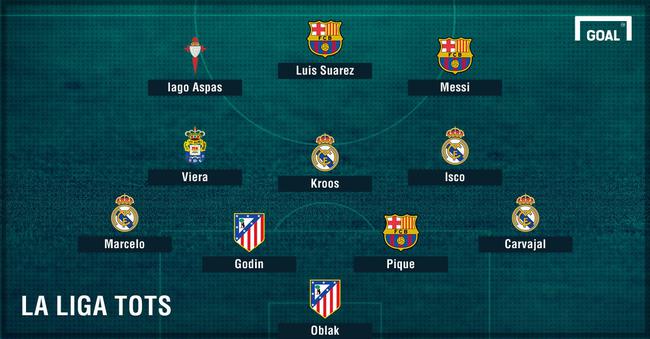 Goal.com评选出的最佳门将为效力于马德里竞技的奥布拉克,四名后卫全部来自西甲三强,分别是皇马左、右后卫马塞洛和卡瓦哈尔,以及马竞中卫戈丁、巴萨中卫皮克。
