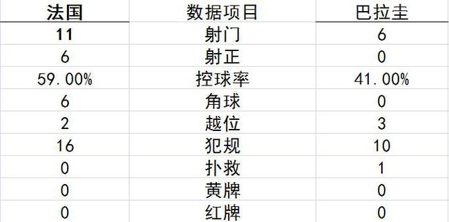 法国近4次对阵巴拉圭取得2胜2平保持不败。本赛季抢眼新秀姆巴佩因伤缺阵,格列兹曼和吉鲁出场。