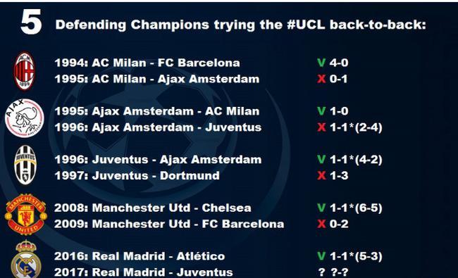 凭借这场胜利,皇马取得了一系列成就。其中最为球迷津津乐道的是,皇马打破了欧冠改制后没有球队能卫冕欧冠冠军的魔咒。自从1992/93赛季欧冠改制以来,没有一支球队能够连续两年获得欧冠冠军:93/94赛季,AC米兰大胜巴萨夺冠,次年决赛败给阿贾克斯;95/96赛季尤文图斯夺冠,之后连续两年取得欧冠亚军;还有阿贾克斯和曼联,他们也分别在次年无缘欧冠冠军……