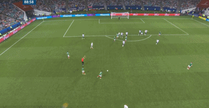 在比赛第89分钟,墨西哥队已经是0-3落后,而这时他们获得了一个任意球的机会,