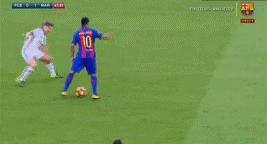 面对布鲁姆奎斯特的贴身防守,小罗娴熟的将球控在脚下。随后只见他把球向前拨弄了一步,然后他直接在背对对手的情况下,上演了穿裆过人,而对手也被小罗这次过人晃倒在地,这次天才般的表演,让全场球迷都为之沸腾。