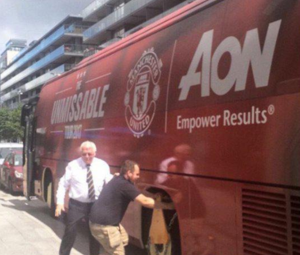 赛前,曼联的大巴停在都柏林Marker酒店外面,有人在曼联大巴的左后轮上放了一个夹子,把大巴的轮子给锁定了。事后被证明这是有人故意而为之,显然这是一个非常低级的恶作剧。有人调侃称:“也许他们不希望曼联走吧。”好在这个插曲没有影响曼联赶上比赛。穆里尼奥的球队最终顺利出赛,他们以2-1赢下了桑普多利亚,球队新援马蒂奇上演了代表曼联的处子秀。